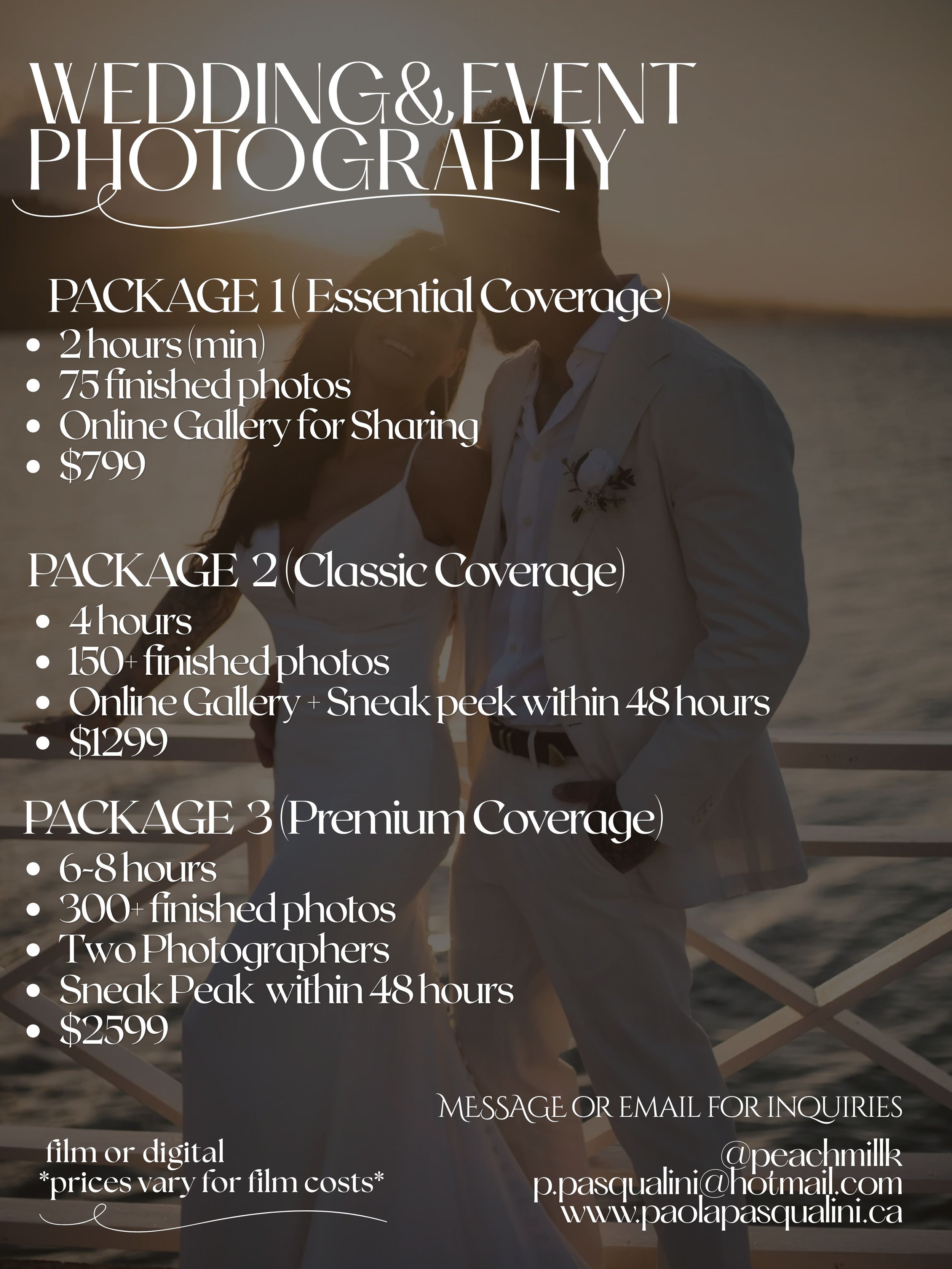 I am a Toronto-based photographer working in both digital and film photography, with a focus on creative portraiture and refined event coverage.